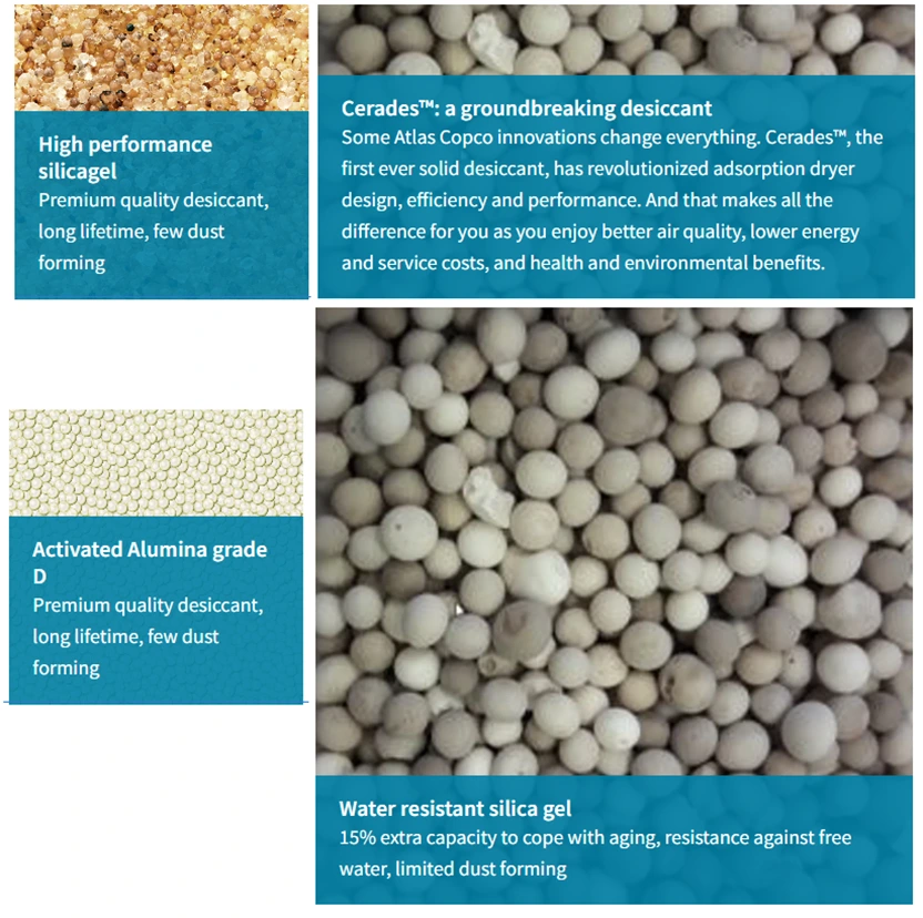 圧力露点に応じて、乾燥剤はアルミナ、シリカゲル、またはモレキュラーシーブ材料で作ることができます。最低圧力露点は-70℃に達します。