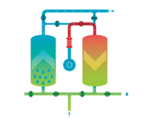 乾燥剤媒体は、乾燥または再生が必要になる前に水分を吸収する有限の能力を持っています。これを行うには、飽和乾燥剤媒体を含むタワーを減圧し、蓄積した水を追い出します。