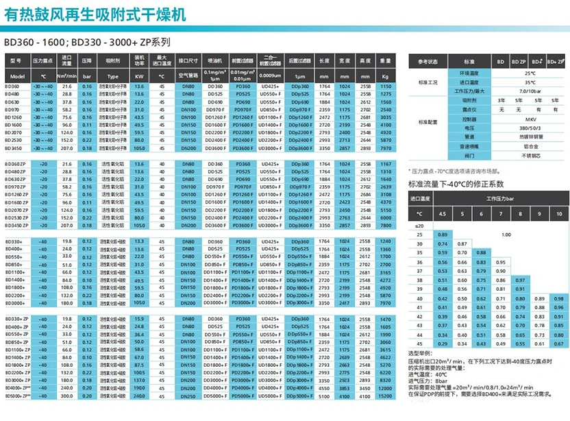 ■ ブロワー空気消費ゼロ吸着ドライヤーは、特に中量から大量の空気の用途に適しています。