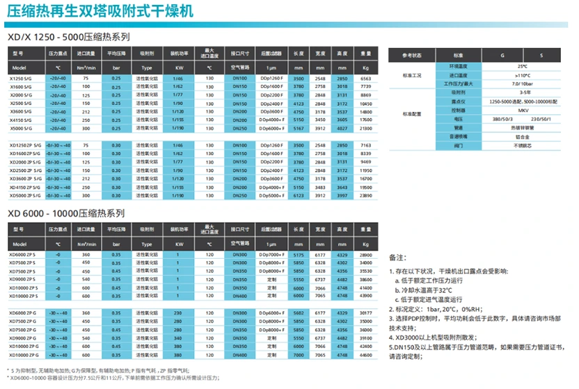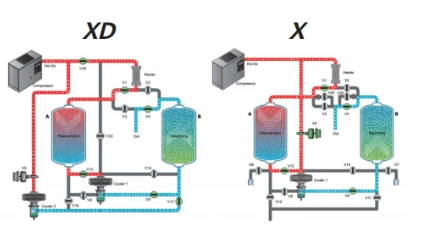XDまたはX圧縮熱吸着ドライヤーは、高品質の吸着剤を使用し、オイルフリーコンプレッサーの圧縮熱を効率的に利用して吸着剤を再生し、エネルギー消費量とメンテナンスコストを大幅に削減します。